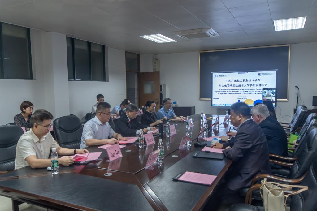 4月24日下午,白俄罗斯国立技术大学校长伊戈尔·沃伊托夫在广东科技企业合作促进会秘书长郭凤志、副秘书长许京丽的陪同下到访乐动注册南海校区并进行科研合作交流。学校党委副书记朱其祥带领国际交流与合作中心、轻化工技术学院等相关负责人热情接待了伊戈尔·沃伊托夫校长一行。白俄罗斯国立技术大学副校长谢尔盖·谢特科;聚合物材料教研室副教授亚历山大·柳比莫夫;共和国石化技术与生产科学与实践研究所所长康斯坦丁·维什涅夫斯基等在线参会。合作交流会由陈金伟院长主持。