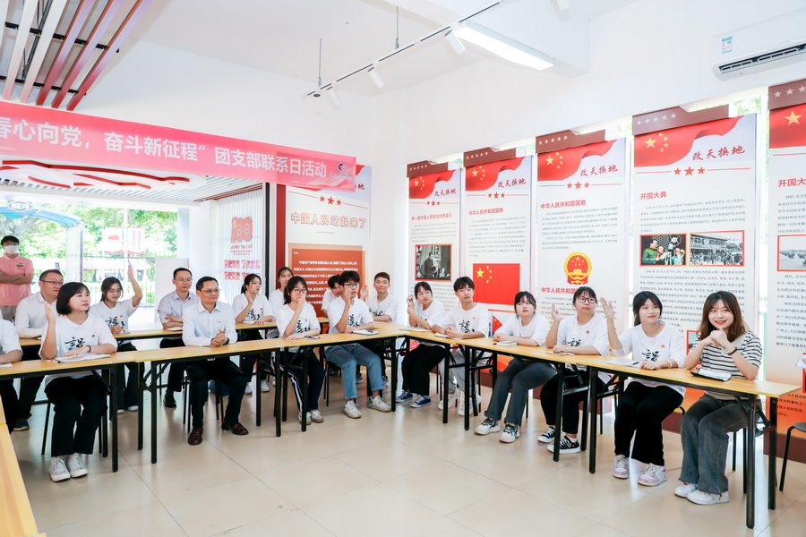 下午,杜安国、卢坤建、梁艳珍、梅建波等校领导深入四校区共同参加“青春心向党,奋斗新征程”团支部联系日活动,与团支部同学一起重温入团誓词。