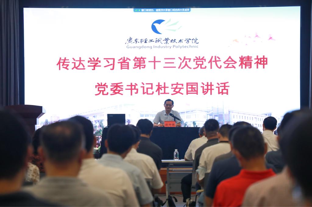 会上,省第十二和十三届党代会代表、学校党委书记杜安国传达了省第十三次党代会精神,并就全校深入学习贯彻落实省第十三次党代会精神进行动员。