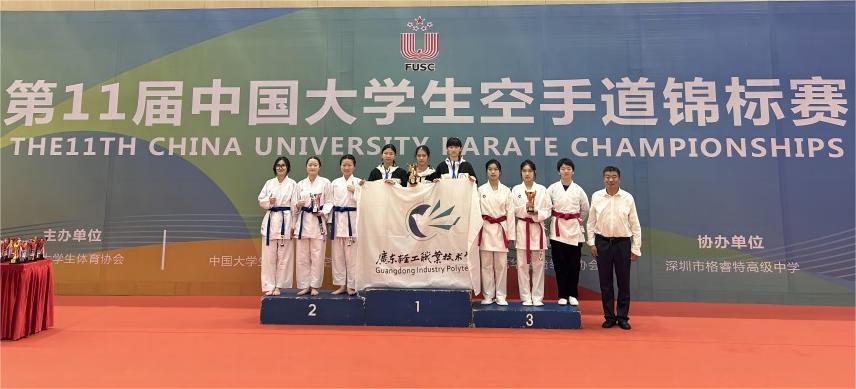 11月22-26日,第11届中国大学生空手道锦标赛在深圳圆满落幕。本次比赛由中国大学生体育协会主办,也是全国大学生级别最高的赛事,吸引包括北京体育大学等全国48所高校参加。乐动注册空手道队派出6名运动员参赛,在领队杜少辉主任,教练员刘宁、陈清华、朱利兰老师带领下,顽强拼搏,勇夺3金3银3铜。其中,机制212常勇辉、网络221谭家盛、电气231杨松纬获男子团体型第一名,数媒212黄乐诗、商英211洪梓娴、营养221叶展桃获女子团体型第一名,数媒212黄乐诗、商英211洪梓娴、营养221叶展桃、机制212常勇辉、网络221谭家盛、电气231杨松纬获混合团体型第一名。数媒212黄乐诗获女子组手51kg第二名,网络221谭家盛获男子组手67kg第二名,数媒212黄乐诗、商英211洪梓娴、营养221叶展桃获女子团体组手第二名。机制212常勇辉获男子组手75kg第三名,营养221叶展桃获女子个人型第三名,机制212常勇辉、网络221谭家盛、电气231杨松纬获男子团体组手第三名。 3名教练员荣获“优秀教练员奖”称号;运动员黄乐诗获“体育道德风尚运动员奖”称号。