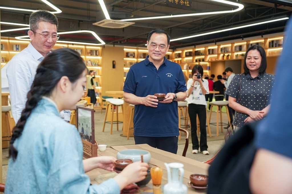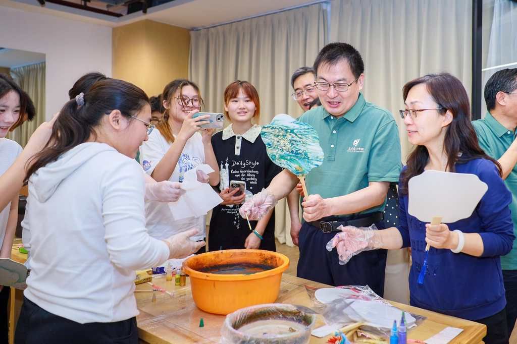 在大学生社区实践基地,参加活动的党员观看了设计作品展,浏览体验了剪纸、漆艺、点茶等非遗项目以及乐动注册学生参与设计的智能车载座椅,了解了艺术设计学院数字创意时代非遗传承的职教新模式、“工学商一体化”人才培养模式、职业本科办学目标。