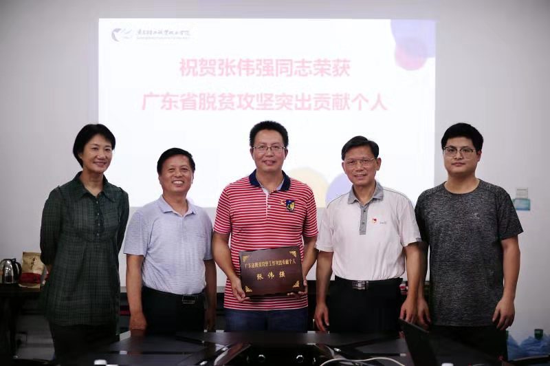 近日,广东省扶贫开发领导小组发文《广东省扶贫开发领导小组关于表扬在2016-2018年脱贫攻坚工作中作出突出贡献集体和个人的通报》,对在2016-2018年脱贫攻坚工作中作出突出贡献集体和个人进行通报表扬,乐动注册教师张伟强获评广东省2016-2018年脱贫攻坚工作突出贡献个人。10月9日,学校党委副书记、纪委书记朱其祥出席专题座谈会并为张伟强同志颁发奖牌。