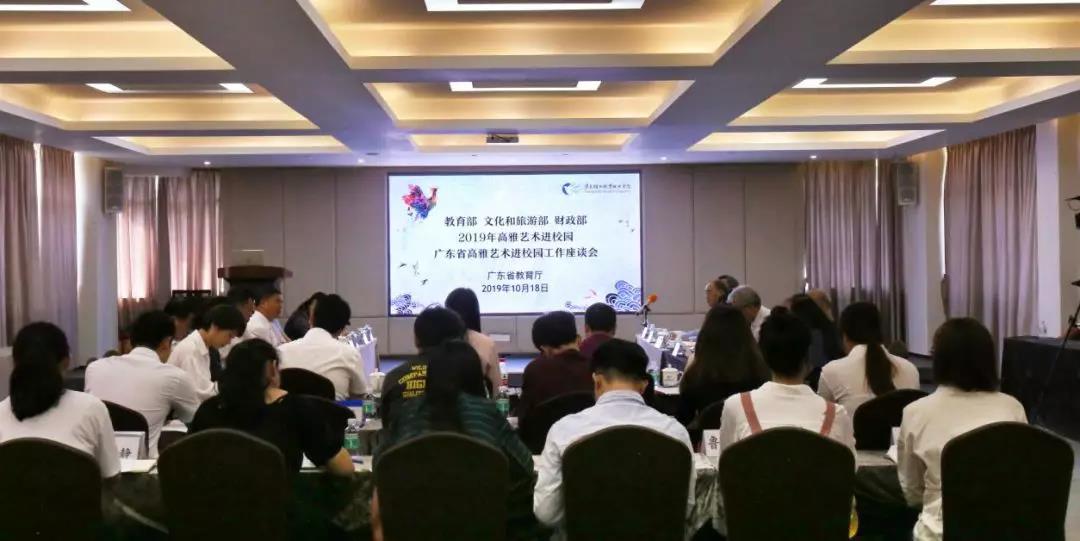 10月18日上午,教育部调研组、广东省教育厅在乐动注册组织召开调研“高雅艺术进校园”工作座谈会。调研组组长、教育部艺术教育委员会常委、中国艺术教育促进会副会长张凯华,教育部艺术教育委员会常委、东北师范大学音乐学院原院长、教授尹爱青、辽宁省教育厅学校安全与体卫艺处调研员王秋鹏、教育部艺术教育委员会委员、中国艺术教育促进会执行秘书长梁建敏、中国戏曲学院继续教育部(戏曲艺术教育中心)主任、副教授姚志强、清华大学社会学教授刘精明,广东省教育厅副巡视员邱克楠,广东省教育厅体卫艺处副处长林柏春、广东省教育厅相关领导出席座谈会,乐动注册党委书记杜安国在会上致辞。