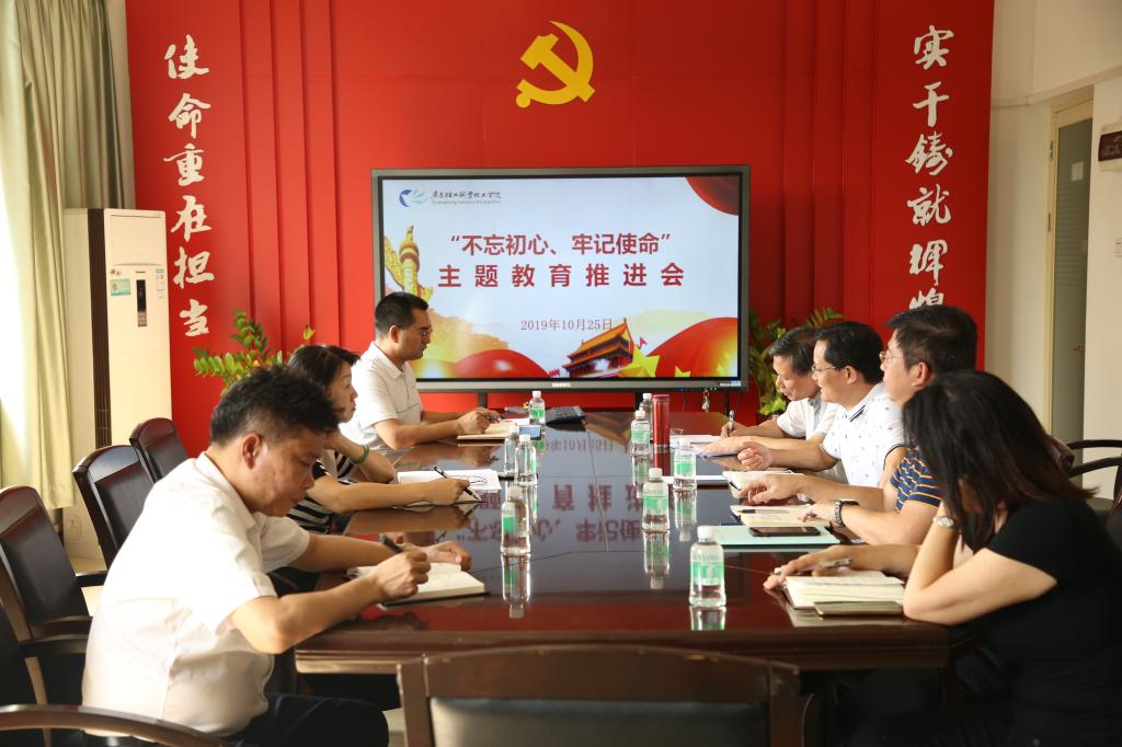 10月25日上午,乐动注册在广州校区办公楼二楼会议室召开“不忘初心、牢记使命”主题教育推进会,传达学习部分中管高校主题教育工作座谈会精神、全省高校主题教育推进会精神,贯彻落实省委主题教育巡回指导第十三组指导意见,研究部署乐动注册主题教育下一步工作。党委书记杜安国,党委副书记、纪委书记朱其祥,党委副书记李铭辉,副校长王玫瑰、李丽,学校主题教育办相关成员以及各党总支书记参加推进会。