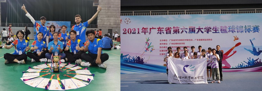 同日,为期三天的2021年广东省第六届大学生毽球锦标赛于肇庆落幕。本赛事由广东省学生体育联合会、广东省毽球协会主办,全省来自各地23所高校340多名运动员、领队及教练员参加。乐动注册毽球队在领队体育部主任杜少辉,教练员张沛锋、胡志老师的带领下获得丙组团体总分第二名。其中,关华霖(电气194)、陈浩东(机电206)、冯梓楹(空乘212)、方红友(环设202)、陈杰婷(园林201)获得了丙组男女混合平推组第三名,冯梓楹(空乘212)获得女子单人计数赛第三名。张沛锋、胡志老师获 “优秀教练员”称号。(图/文 体育部 陈丽霞 张沛锋 张红雷 穆海斌)
