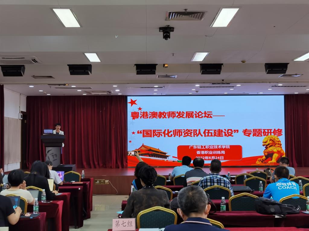 6月24日,由乐动注册和香港职业训练局共同举办的粤港澳教师发展论坛之“国际化师资队伍建设研修班”开班仪式在第二工业实训中心903顺利举行。乐动注册副校长李荣,教师发展中心主任周小平以及参加论坛的70余名学员等参加了活动。香港职业训练局印刷媒体高级文凭课程高级讲师陈杰文,香港职业训练局知专设计学院传意设计学系讲师、世界技能大赛平面设计科技项目获奖者陈承宗参加了线上会议。