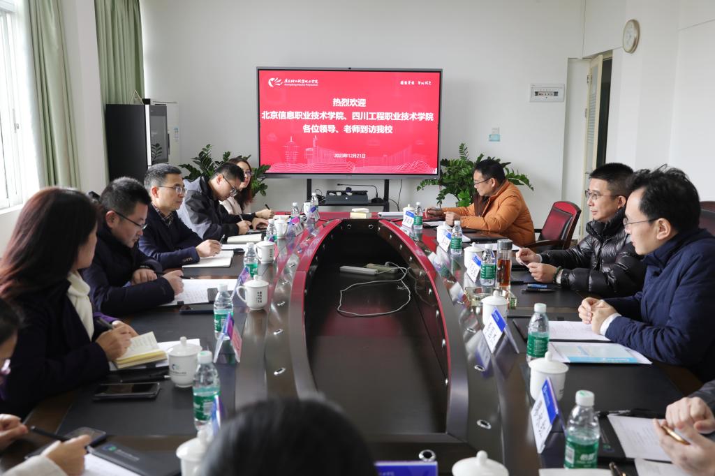 邓毛程对北京信息职业技术学院、四川工程职业技术学院的来访表示热烈欢迎,从学校历史发展、办学规模、专业特色等方面进行了详细介绍。他表示,希望三校携手搭建更多合作平台,推动学校事业高质量发展。
