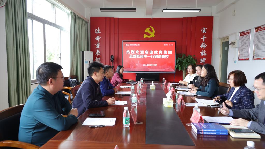 3月19日,启迪教育集团总裁张超中一行到访乐动注册,学校党委副书记梁艳珍接待了来访客人。双方在新港校区办公楼会议室进行座谈交流。