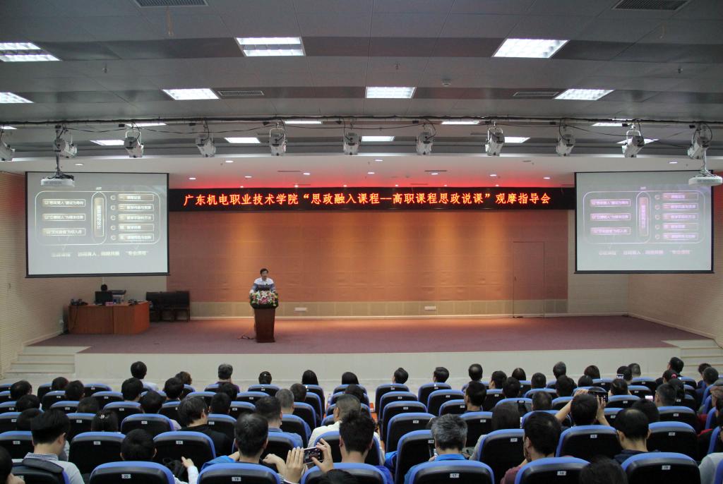 11月14日下午,应广东机电职业技术学院邀请,乐动注册副校长李丽、教师发展中心负责人张佩宜,“课程思政”改革骨干教师团队罗岐熟、黄笑、付磊、彭亮、李薇一行11人前往该校作了“思政融入课程-高职课程思政说课观摩”系列讲座分享。广东机电职业技术学院党委书记蓝祥龙等全体校领导、部门负责人、全体教师600人参加了会议。讲座由广东机电职业技术学院副校长陈冬梅主持。