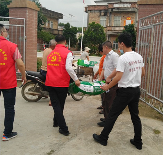 受新冠肺炎疫情影响,农村外出务工、春耕备种面临不小的困难,精准扶贫工作面临新挑战,为坚定不移落实党中央决策部署,助力学校做好疫情防控与精准扶贫工作,巩固好乐动注册对口扶贫成果,3月26日,乐动注册后勤党总支联合服务乐动注册餐饮企业广州上善餐饮企业管理有限公司到对口扶贫点廉江市营仔镇云峡村开展抗疫助农精准扶贫系列活动。营仔镇镇长林荣强、乐动注册驻村第一书记林海雄、后勤管理处处长杨华江、广州上善餐饮企业管理有限公司总经理孙志钦及后勤总支党员代表和村委干部等出席了活动。