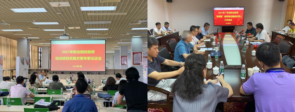 广东省教育厅教师继续教育指导中心组织召开的广东省职业教育“双师型”教师培训基地负责人工作会议及广东省职业院校教师素质提高项目管理办公室(下称省项目办)组织的2021年职业院校教师培训项目(国培、省培项目)实施方案专家论证会于5月13日至14日在乐动注册南海校区北区图书馆二楼会议室、图书馆三楼多功能课室顺利举行。