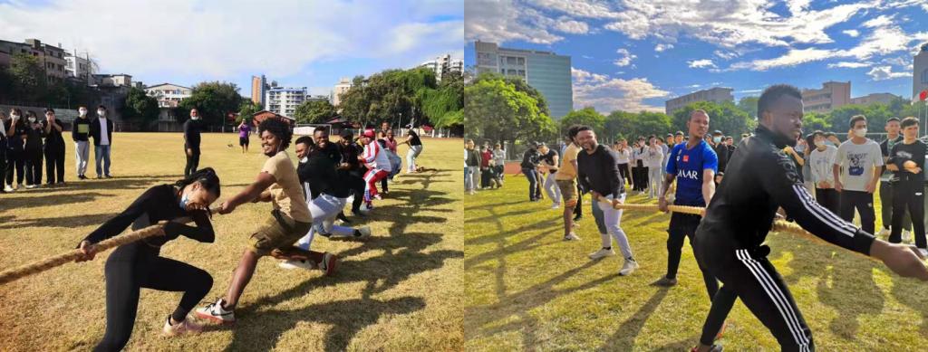 为增强国际生的健康意识、提高国际生的身体素质,让国际生更好适应在华校园生活,11月18日,来自管理学院和财贸学院的23名国际生参与了2021年校趣味运动会,在拔河比赛的环节中,进行了国际生双方对阵、国际生与国内学生对阵的两场精彩比赛,吸引了众多同学的围观,赛场边加油声、欢呼声此起彼伏。