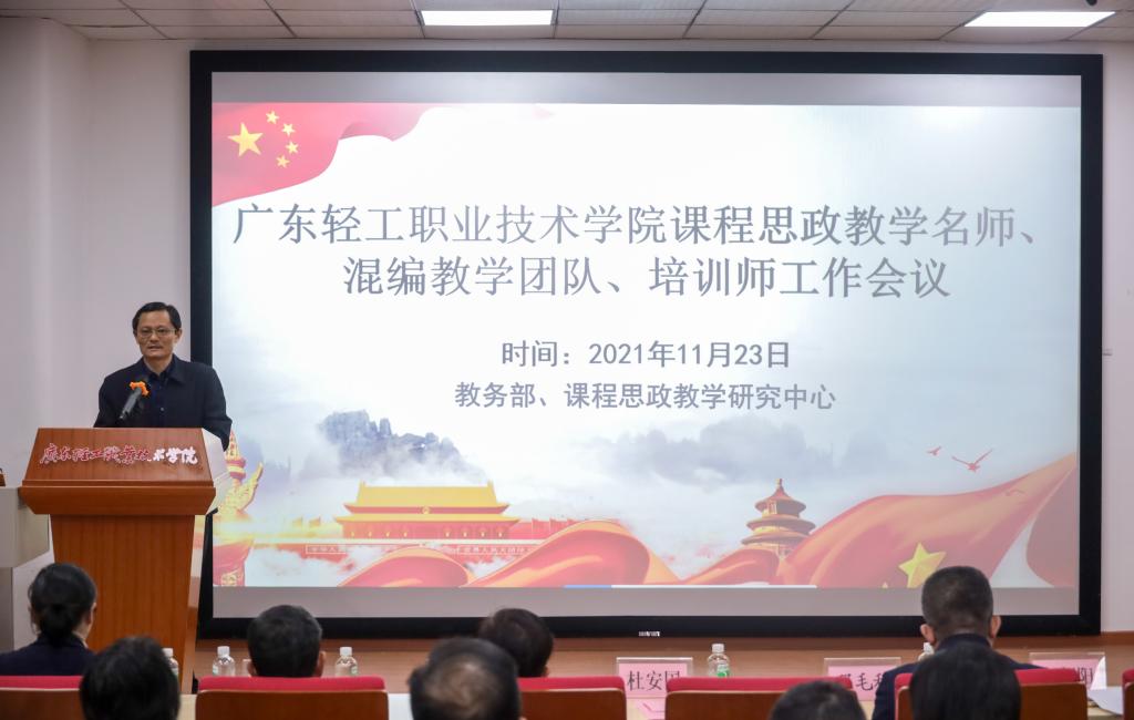 11月23日下午,乐动注册在广州新港校区第一实训楼105会议室召开课程思政教学名师、混编教学团队、培训师工作会议。学校党委书记杜安国出席会议并讲话,副校长邓毛程、李荣分别为课程思政项目负责人及课程思政培训讲师颁发证书。